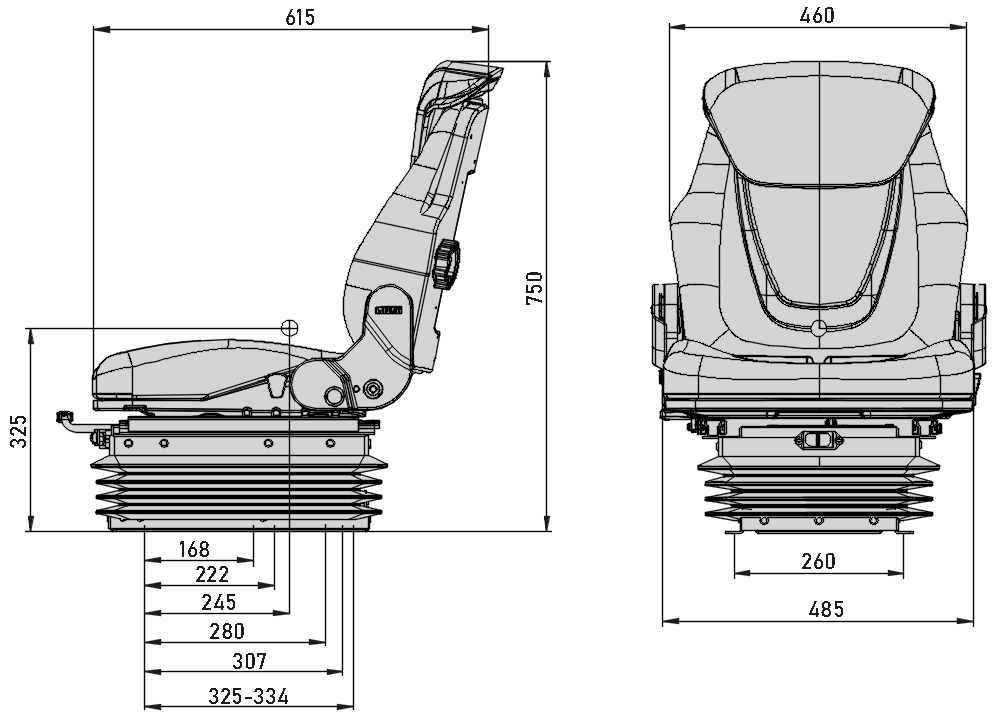 • Пневматическая система подрессоривания (встроенный компрессор 12V или 24V )